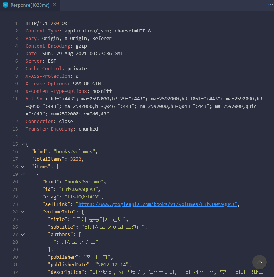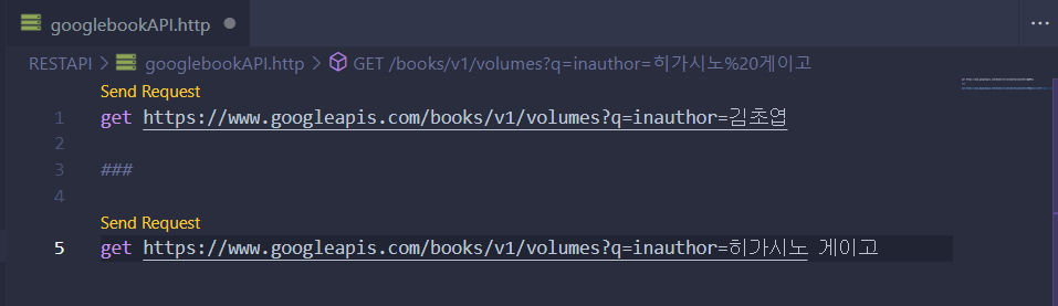 VS CODE에서 REST API를 사용해 볼 수 있는 확장 프로그램(REST Client)이 있다고 해서 googlebooksAPI를 VS CODE에서 한번 사용해보았다.