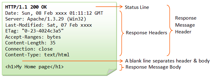 Request와 Response 모두 header와 한줄 공백을 띄운후에 Body를 보내준다. Body는 Response라면 HTML이 될 수 있고, Request라면 POST를 할때 서버쪽에 보내는 데이터가 될 수 있다.